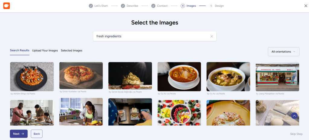 - サイト内で使用したい画像を選択する(スキップ可)