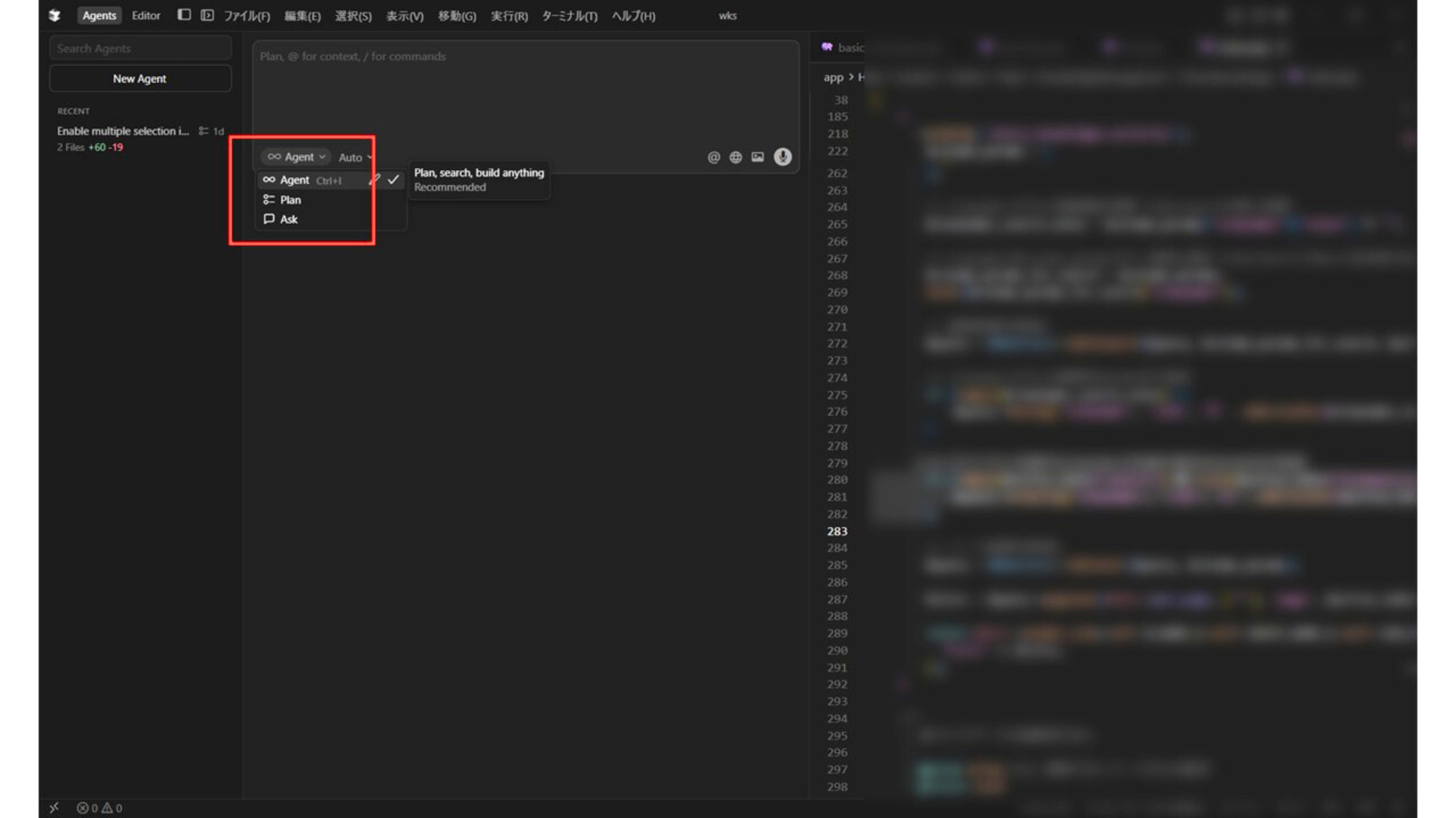 Agent・Planモードは、高速かつ正確にコードを生成・修正してくれますが、指示が曖昧だとAIが意図を誤解して不要なファイルを作成したり、期待と異なるコードを出力することもあるので、こまめにコミットして、元に戻せるようにしておくことが大切です。